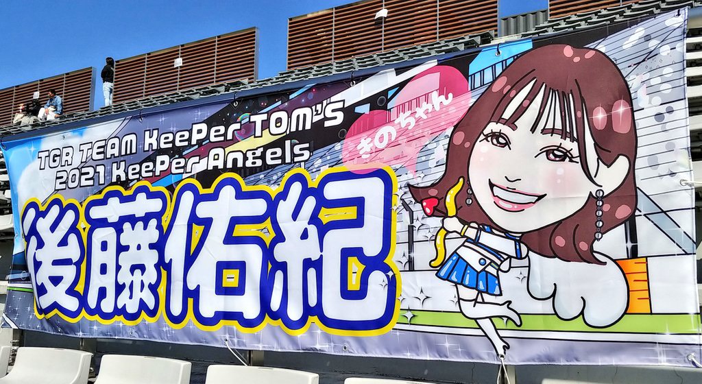 今回はピットビューイングも実施されました!人数制限や距離はあるものの、ファンの方々のお顔を見ることができてとても嬉しかったです♡今年版の横断幕も、、、!
