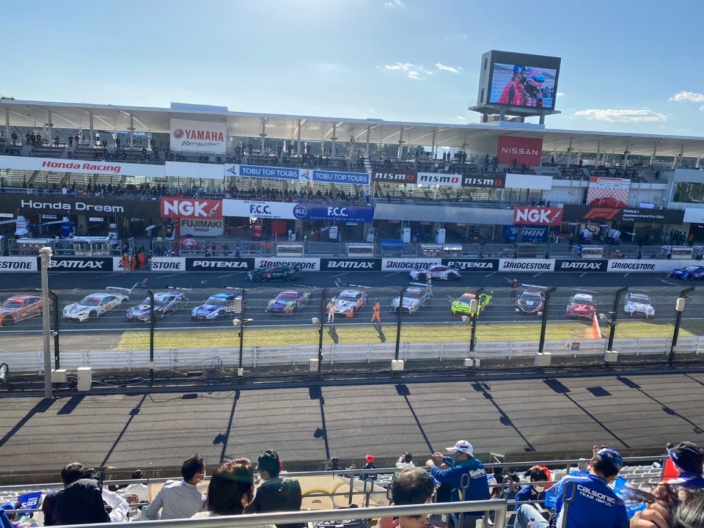 スタンド席から見るピットやグリッドはとても新鮮で、なによりマシンが目の前を通過する迫力、、、!大きなエンジン音にドキドキしながらレースが始まります!