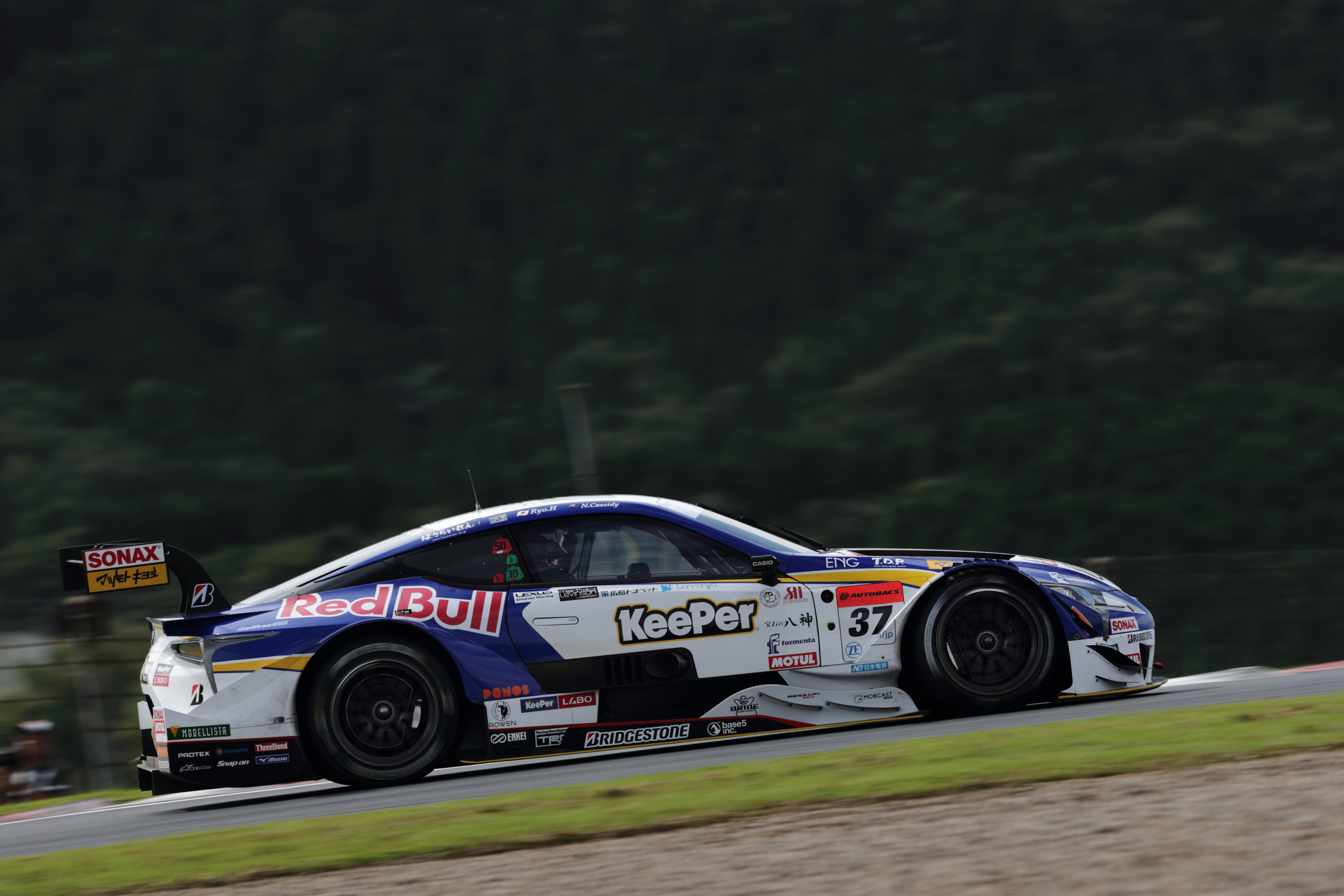 50周目にリスタート、路面は変わらずウエットコンディション、KeePer37号車はずるずると順位を落とし8番手迄後退。